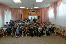 А у нас, к празднику прошёл смотр строя и песни среди старших и подгоовительных групп, где дети продемонстрировали свои способности и посостязались в эстафетах. Впервые за долгое время жюри было сложно определить победителя,так как все команды выступили одиноково-хорошо! Победила дружба!