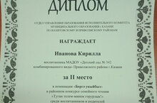 Поздравляем Иванова Кирилла воспитанника МАДОУ «Детский сад № 342 комбинированного вида» за II место в номинации «Бергә укыйбыз»