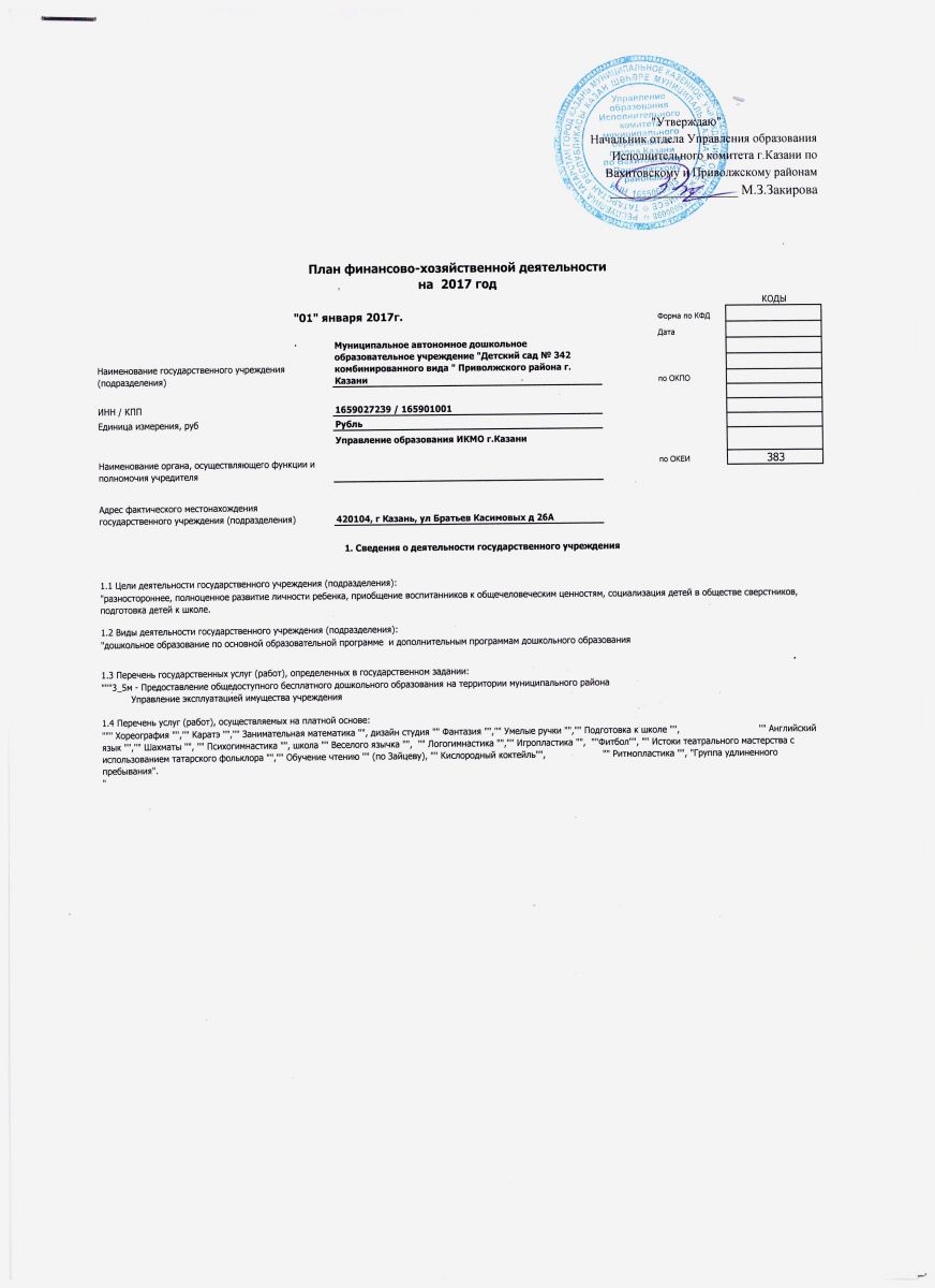 Муниципальное автономное дошкольное образовательное учреждение "Детский сад № 342 комбинированного вида" Приволжского района г. Казани