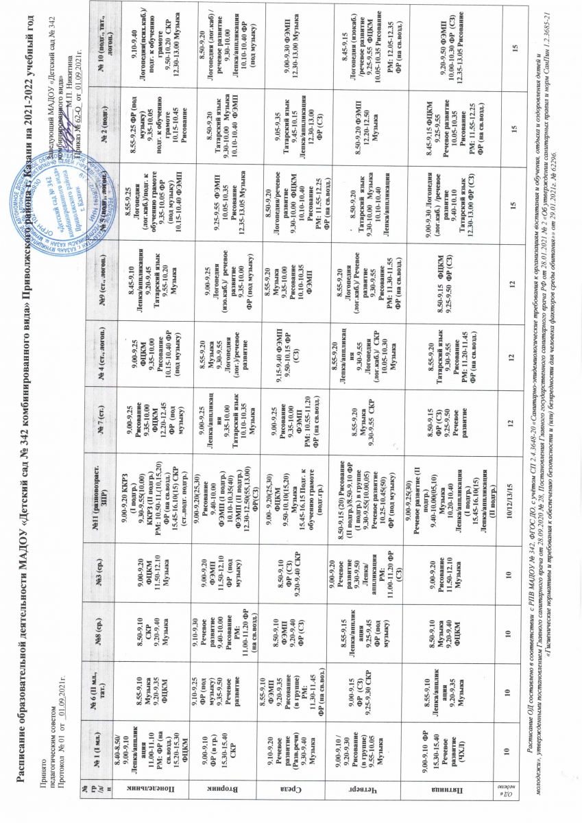 Сетка ОД в МАДОУ № 342 на 2019-2020 учебный год