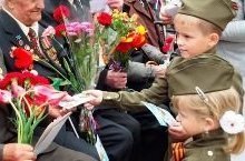 Рано утром в майский деньС дедушкой мы встали.Я прошу: «Скорей надень,Дедушка, медали!»Мы шагаем на парад,Миру, солнцу рады,И у дедушки блестятНа груди награды.Не отдав своей землиВражеским солдатам,Нашу Родину спаслиПрадеды когда-то.Сколько лет мне? Только пять,Но от вас не скрою,Что хочу достойным статьДедушки-героя! -