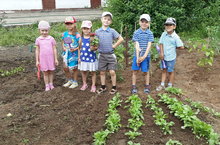 В детском саду созданы условия для воспитания у детей привычки трудиться, любви к коллективному труду. В ДОУ есть небольшой огород, который дает уникальную возможность с апреля по октябрь систематически включать детей в активную трудовую деятельность совместно со взрослыми. Ранней весной сотрудники детского сада вскапывают землю, взрыхляют её и делают грядки. Дети старшей и подготовительной групп под руководством воспитателей засеивают эти грядки семенами моркови, редиса, свеклы, укропа, петрушки. Систематическое участие в труде по выращиванию растений и уходу за ними способствует развитию у детей наблюдательности, воспитанию привычки к труду.