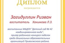 Поздравляем педагога Ландыш Закировну и воспитанника Загидуллина Ризвана с победой в районном конкурсе поделок.