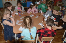 Сегодня в ДОУ праздничное мероприятие,посвященное Дню Победы, провели в форме Клубного часа. Воспитанники посетили четыре клуба: 1) "Эстафета" - дети соревновались в ловкости, смелости, 2) "Кинотеатр"- просматривали мультфильмы военной тематики, 3) Познавай-ка" - рисовали военную технику, писали военные письма, учились складывать военный треугольник-письмо, 4) "Мастерская" - делали поделку "Голубь мира".