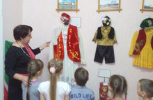 30.11.2015 г.в рамках тематической недели «Путешествие по городу Казань» воспитателем по обучению детей татарскому языку Садриевой Далией Саетовной были организованы экскурсии для детей всех возрасных групп в этнографический музей ДОУ. Воспитанникам были представлены национальные костюмы мужчин и женщин, детские костюмы, предметы быта татарского народа, а также иллюстрации достопримечательностей древней и современной Казани.