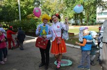 С поздравлениями к дошколятам поспешили мультяшные герои - КНОПКА и ЗНАЙКА: