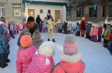 18.02.2015 г. в МАДОУ №42 было организовано культурно-досуговое равлечение "Ай, да Масленица!" музыкальными руководителями, воспитателями всех возрастных групп, которое традиционно празднуется на открытом воздухе.Дети с нетерпением ждали этот праздник, готовились к нему: пели песни, знакомились с русскими народными закличками.Главным героем праздника была Баба Яга, она соревновалась с детьми в катании на ледянках, в беге на метле, покатала детей на карусели.В гостях побывал и Петрушка, он вместе с детьми под сопровождение плясовых наигрышей вспомнил русские народные игры и потехи. В завершении праздника детей угощали вкусными блинами.