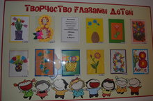 Завершающим этапом смотра-конкурса "Быт и культура татарского народа" в МАДОУ №42 была выставка детских коллективных и индивидуальных работ на стенде "Творчество глазами детей".Работы отличаются фантазией, творчеством, были использованы различные техники рисования, аппликации с использованием природного и бросового материала.