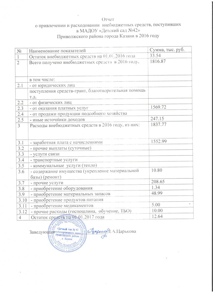 Отчет о привлечении и расходовании внебюджетных средств за 2016 год