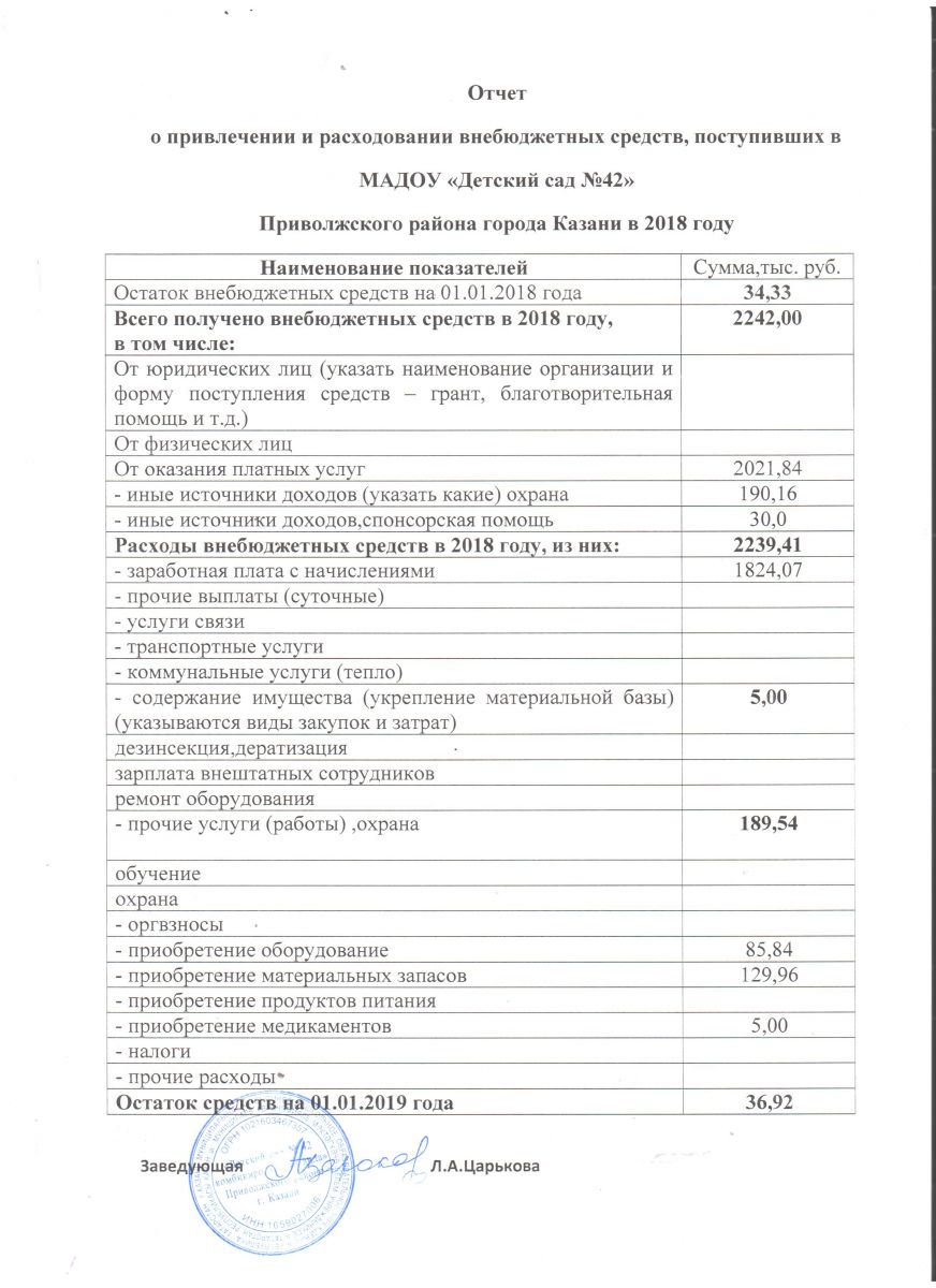 Отчет о привлечении и расходовании внебюджетных средств за 2018 год