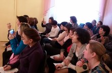 Педагоги МАДОУ №55 совместно в кафедрой дошкольного образования ПМЦПК и ППРО Института психологии и образования К(П)ФУ провели базе детского сада семинар-практикум для слушателей курсов повышения квалификации музыкальных руководителей ДОО РТ по теме "Инновационные формы сотрудничества и сотворчества музыкального руководителя и педагогов ДОО". Руководитель курсов ст. преподаватель Исламова Г.Г. Опыт работы представили музыкальные руководители Гайнутдинова Ф.Р., Акбашевва Г.А., воспитатели Саттарова Л.У., Самигуллина Г.З., Кириллова О.А., Миронова Т.М.