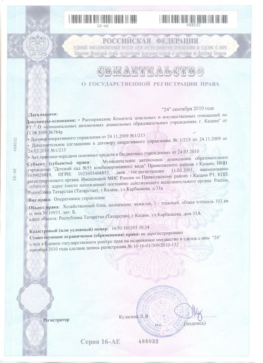 | Адрес: | РЕСПУБЛИКА ТАТАРСТАН, г. КАЗАНЬ, ул. КАРБЫШЕВА, д. 31а |