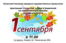 Вниманию студентов 1 курса и родителей! Приглашаем на торжественную линейку, посвященную "Дню Знаний!"