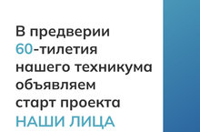 В преддверии большого праздниак - 60-ти летнего юбилея техникума, стартует проект "Наши лица", который поможет лучше узнать наших руководителей и преподавтелей. Мы надеемся, что лучше узнав наших преподавателей, студенты смогут найти в них наставника, единомышленника и даже друга!