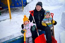 После обильного снегопада родители младшей группы помогли очистить наш участок от снега.