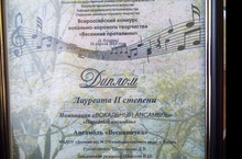 26 апреля 2014 года наши дети из средней-старшей группы приняли участие на Всероссийском конкурсе вокально-хорового творчества "Весенние проталины" и стали лауреатами 2 степени. Мы всех поздравляем!!!!