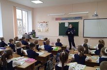 Инспектор ГИБДД в 1А и в 1Г классах обсудил с учащимися вопросы по профилактике детского дорожно-транспортного травматизма, нарушений правил дорожного движения в осенний период. Напомнил ребятам основные правила поведения на дороге, объяснил, как безопасно переходить проезжую часть по пешеходному переходу.