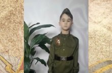 Песню "Наша армия самая сильная" исполняет ученик 4Б класса Гилазов Карим.