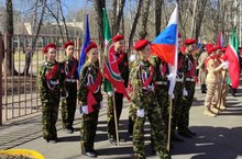 Юнармейский отряд "Юго-Восток" им. В. Синицына принял участие в городском смотре-конкурсе "Равнение на знамена". Руководитель отряда Азизов Ф. С.