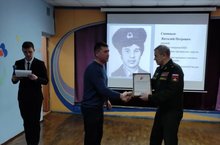 Руководителю юнармейского отряда "Юго-Восток" Азизову Ф. С. В ЦДТ "Олимп" вручили свидетельство о присвоении отряду имени Виталия Синицына.