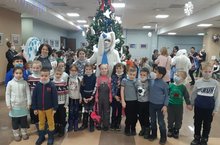 26 декабря зажглись новогодние огоньки на елке в ЖМ "Петровский". Учащиеся, проживающие в микрорайоне, пришли посмотреть на сказочных героев.