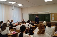 Капитан полиции, инспектор ОПДН ОУПП и ПДН ОП-10 "Промышленный" УМВД России по г. Казани Калиева Л. К. побеседовала с учащимися 3Г, 9А и 9Б классов о профилактике правонарушений.