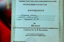 Итоги городской НПК им. Хади Атласи “Исторические и культурно-нравственные ценности народов Татарстана”: Диплом III степени у учащейся 9Л класса Алакиной Алины. Учитель Шурхаев Д.Ю.