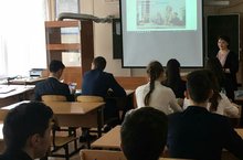 Старший преподаватель кафедры иностранного языка ИМО КФУ Шакирзянова Р.М. рассказала учащимся 11А класса об институте международных отношений, направлениях обучения и возможносиях стажировки.