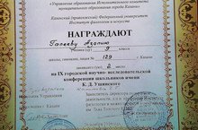 Поздравляем ученицу 9А класса Галееву Азалью - 2 место в городской НПК школьников им. К.Д.Ушинского. Учитель Капитова Ч.Г.