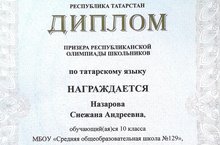 Ученица 10А класса Назарова Снежана - призер республиканской олимпиады по татарскому языку. Подготовил призера - учитель татарского языка и литературы Шакирова Рушания Азгаровна.