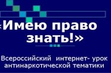Для учащихся 5-11 классов прошел Всероссийский Интернет-урок антинаркотической направленности "Имею право знать!" Школьников ознакомили с ресурсами сайта УФСКН РФ по контролю за оборотом наркотиков по Республике Татарстан, сайтом антинаркотической комиссии в РТ (antinarc.ru), профилактическими проектами "Самостоятельные дети" и "Клубная жизнь без наркотиков".