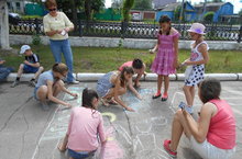 С учащимися проведена была беседа «Моя семья в истории моей страны». Ребята по отрядам приняли участие в конкурсе рисунков на асфальте «Папа, мама, я – дружная семья»