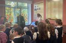 В рамках духовно-нравственного и патриотического воспитания школьников ученики нашей школы Сирачева Камилла (8А), Шакурова Рамина и Гинанова Алия (8Л) провели интересную экскурсию по школьному музею 1Б классу.