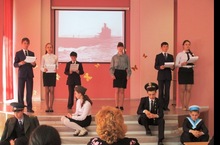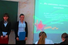 Среди учащихся 5-7 классов прошел конкурс литературно-музыкальных композиций "Города-герои". Итоги: 1 место - 7А класс (учитель Лесота М.Б.), 2 место - 6Б (учитель Гафиатуллина А.А.)