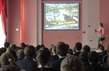 Урок Универсиады для учащихся 6-8 классов провела Идиатуллина А.А. - учитель английского языка, волонтер гид-переводчик. Школьникам показали видеоролики "Казань спортивная", "Деревня Универсиады", "Объекты Универсиады", а также мультфильм про Юни.