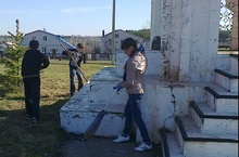 В рамках подготовки к празднованию 68 годовщины Победы в Великой Отечественной войне учащиеся 5А класса с руководителем музея Капитовой Ч.Г. провели субботник у обелиска в п. Мирный.