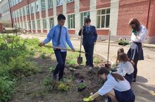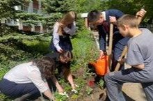 К школьной акции «Наша клумба» присоединились ученики и родители 7А, 4Д и 10А классов.