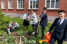 К школьной акции «Наша клумба» присоединились ученики и родители 3В, 7В и 8А классов.