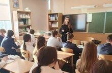 В рамках занятий профориентационного курса «Россия-мои горизонты» в 9-х классах сегодня прошла встреча с менеджером онлайн школы «Parta»Родичевой А. С.