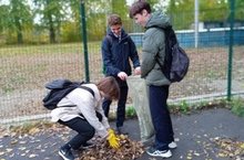 Проводится большая работа по уборке мусора, сухой листвы. 10А, 4Д, 11Б классы дружно взялись за работу и быстро навели порядок на своей территории.