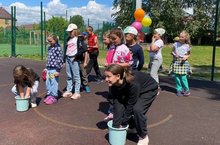 После вкусного завтрака, для воспитанников пришкольного лагеря был организован "Сабантуй". Ребята состязались в 5-и видах соревнований. Победителям на станциях выдавали жетончики.