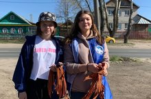 Активисты школьного ученического совета сегодня раздали георгиевские ленты жителям посёлка Мирный.