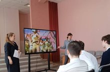 Сотрудники Дома-музея Василия Аксенова по Пушкинской карте рассказали учащимся 9Л класса про 30-е года СССР.