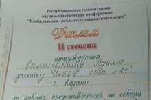 Ученик нашей школы Самигуллин Адель награжден Дипломом 2 степени на Республиканской гуманитарной научно-практической конференции "Глобализация - реальность современного мира" (рук. Шайхутдинова Л.Х.). Молодец!