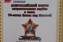 Ученица нашей школы Кручинина А. стала участницей на Всероссийском форуме патриотических клубов, прошедший в Москве. Форум организован Государственным университетом управления в честь 75-летия Битвы под Москвой.