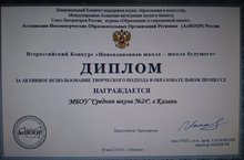 Поздравляем творческий коллектив учителей нашей школы: Кузнецову Э.А, Халиуллину Г.А, Абдуллину М.Х, Апачеву В.В. и Николаеву Н.Е, получивших дипломы лауреатов во Всероссийском конкурсе "Инновационная школа - школа будущего".