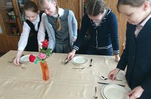 Учитель технологии Голубева Г.И. организовала конкурс среди девочек 5 классов «Сервировка стола». Девочки показали не только основные правила сервировки (последовательность размещения приборов и порядок их смены), но и проявили фантазию в декорировании стола на все случаи жизни.