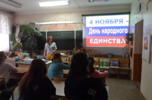 1.11.2013г. педагогом- организатором Матвеевой С.В. в 6 классах был проведен «Урок – путешествие. День народного единства».