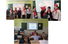Сегодня активистами была проведена беседа о истории возникновения " Пионерской организации", мастер - класс по завязыванию пионерских галстуков, и интерактивная викторина " Пионер"