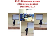 19 и 20 ноября для 5-11 классов прошел конкурс чтецов, приуроченный ко Дню матери, а 27 ноября состоялось награждение участников. Молодцы! Поздравляем!